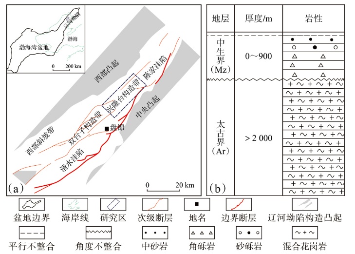 辽河坳陷兴隆台构造带位置(a)及岩性地层综合柱状图(b)"