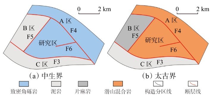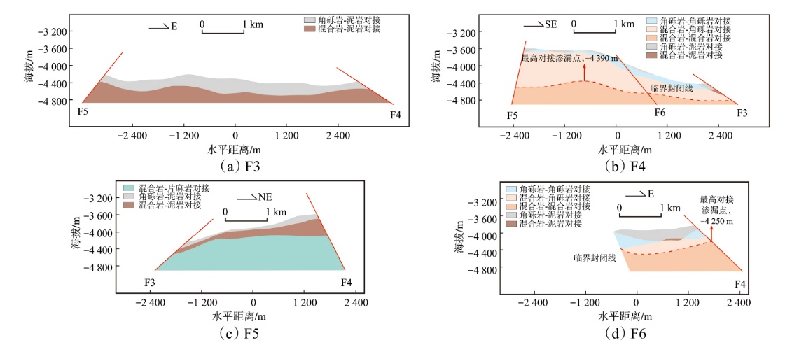 Allan图分析对于断层封闭性的研究具有重要意义。以辽河坳陷兴隆台构造带太古界潜山油气藏为例,综合测录井、三维地震和实验分析测试资料,提出了一种基于高精度地质建模技术的改进Allan图法,用于分析断层封闭性。研究结果表明:①基于井-震联合建立的高精地质模型可解决井位数据缺失的问题,在精细剖析变质岩潜山各个区域的岩性发育情况及造缝能力的基础上,高精地质模型可准确刻画断层两侧的地层接触关系和岩性分布规律,经人工检查和调整可形成最终的改进Allan图。②研究区断面上共存在6种岩性对接模式,其中具备良好封闭性的对接模式包含角砾岩-泥岩、混合岩-泥岩、混合岩-片麻岩、混合岩-角砾岩、角砾岩-角砾岩,区外围断层F3、F5全封闭,区内渗漏点海拔为-4 390 m。③结合模糊数学方法、现场流体分布进行了交叉检验,各个区域分析结果与改进Allan图法分析的断层侧向封闭性吻合度高,说明该方法在变质岩潜山表现出优异的适用性和准确性,具有较高的应用价值。