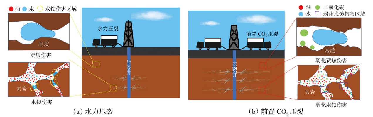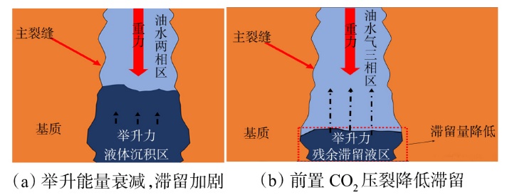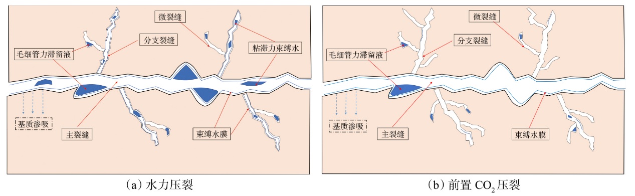 利用前置CO2压裂技术开发页岩油储层优势明显,能够降低储层伤害、提高缝网复杂度及油气动用程度。通过大量文献调研和系统梳理,总结了前置CO2压裂液体滞留机理及引起的储层物理-化学性质变化,并讨论了前置CO2压裂液体滞留效应的阶段性及压裂工艺的适用性。研究结果表明:①页岩油储层前置CO2压裂液滞留机理主要包括多级裂缝网络滞留、近缝面基质渗吸滞留、物理-化学作用引起滞留;主裂缝中重力主导滞留,分支及微裂缝的“闭锁”效应明显。②液体滞留引起储层物理-化学性质变化包括促进缝网形成、弱化水相圈闭、基质孔隙增压;CO2通过影响表面张力进而影响近缝面基质液体的滞留,其强扩散效果及对岩石的溶蚀作用有利于形成复杂裂缝网络,以改善岩石的渗透性。③前置CO2压裂液体滞留效应在裂缝扩展、闷井、返排、生产4个阶段差异明显,未来需加强前置CO2压裂技术的迭代升级,发挥CO2驱油与封存协同优势,发展智能调控优化储层多介质协同注入策略,实现油气增产与碳中和共同发展。