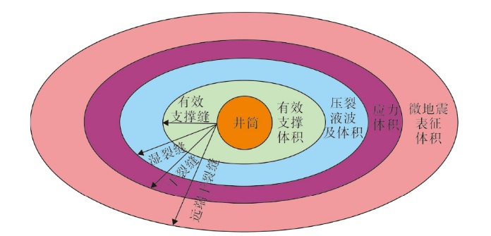 压裂过程中不同的改造体积和裂缝范围表征示意图(据文献[18])"